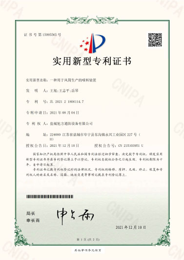一种用于风筒生产的喷料装置专利证书